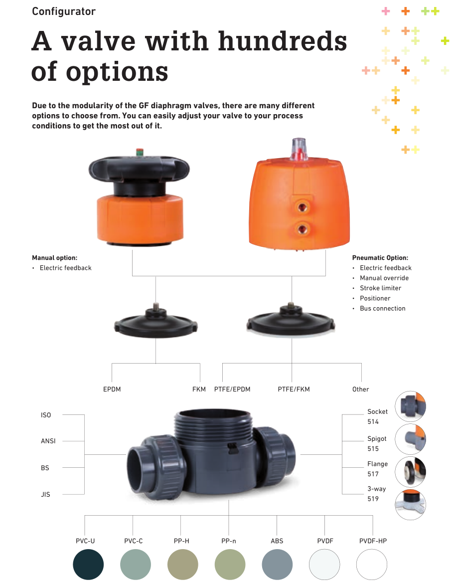 +GF+高性能隔膜閥,擁有豐富的產品配置,能夠為客戶提供完美的解決方案。